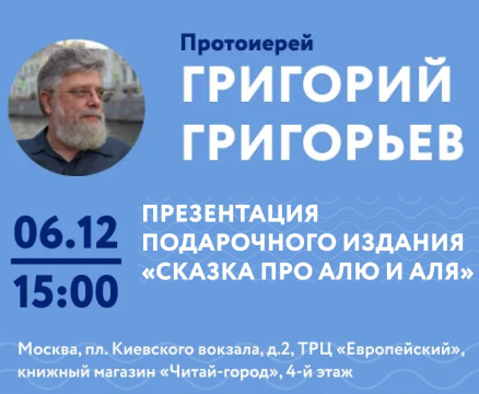 Презентация пройдёт 6 декабря в 15:00 в магазине «Читай-город» (Площадь Киевского вокзала, д. 2, ТЦ «Европейский», 4 этаж). На встрече гостей ждёт автор цикла — протоиерей Григорий Григорьев.